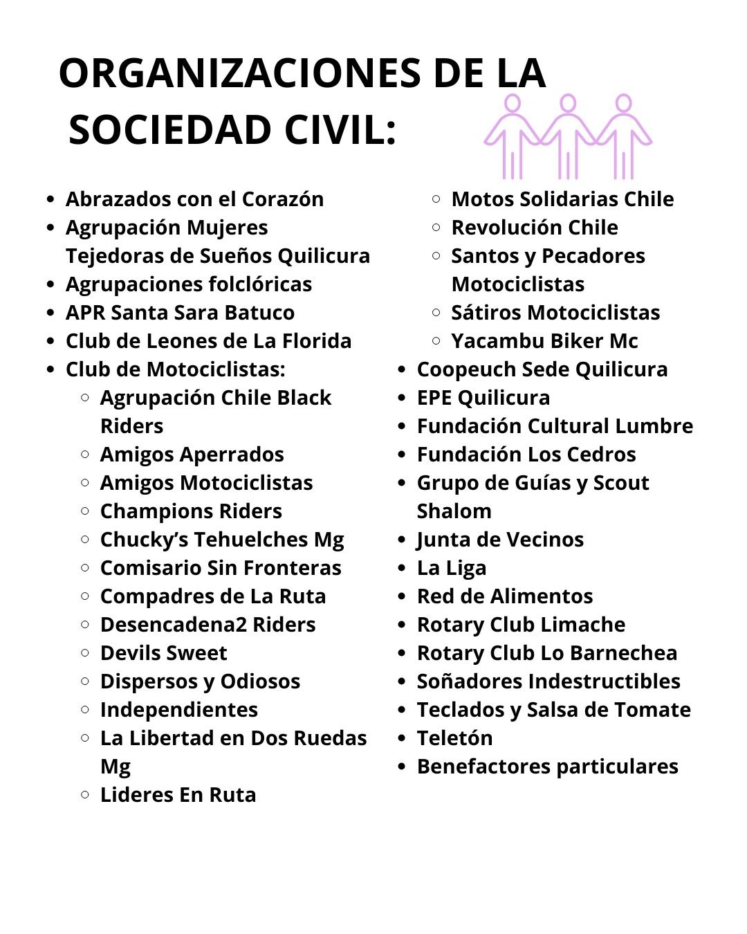 Nuestra presencia de 65 años en Chile no es solo una marca de longevidad; es la prueba de una labor social y humana profundamente relevante para nuestros usuarios. Gracias a esta trayectoria ejemplar, hemos logrado consolidar una red robusta y vital que nos permite ejecutar nuestra labor. Es el apoyo continuo de esta extensa red de colaboradores lo que nos permite mantener la excelencia y la sostenibilidad de nuestro trabajo en beneficio de quienes más lo necesitan.